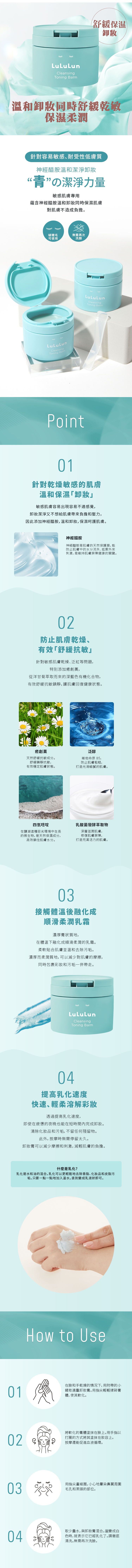 | - 針對容易敏感、耐受性低膚質 癒創薁: 舒緩抗敏穩定 泛醇: 柔滑粗糙肌膚 四氫嘧啶: 保濕鎖水因子 |